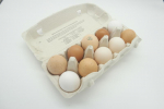 Mischung aus Größe M und L - da einige Junghennen dabei sind, haben manche Eier noch dünnere Schalen.